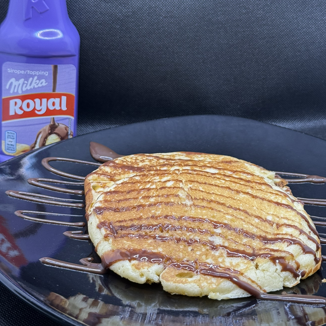 Y para darles el toque final de pura felicidad, las regamos generosamente con un cremoso sirope que preparamos con auténtico chocolate Milka. No es un sirope cualquiera, es una salsa suave y dulce con el sabor inconfundible del chocolate de los Alpes, que se filtra entre las tortitas calientes.